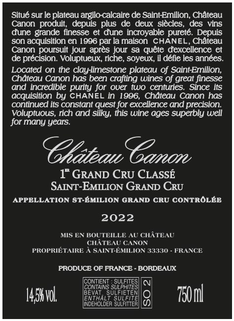 Ein herausragender Canon im Jahr 2022. Geschmeidig, glänzend, oh so charmant, wunderschön glatt und gut strukturiert wie reiner Seidensamt, aber mit einer Dichte in den Tanninen, die den Mund ergreift und umhüllt, dazu weiß man, dass darunter enorme Kraft und Konzentration in den Wellen von Lakritz, Steinen und schwarzen Johannisbeeren liegen. Extrem poliert und charmant. Lebendig, energiegeladen, gespannt und direkt. Es ist nicht üppig, eher direkt, aber dieser Wein begeistert. Nahtlos und mühelos, hell und energetisch, aber mit solch ruhiger Kontrolle und Selbstvertrauen. Ein atemberaubender Wein, mehr für das, was er 2022 nicht sagt, als für das, was er sagt. Ein Ertrag von 45 hl/ha. pH-Wert 3,5. 18 Monate Reifung mit 50 % neuem Eichenholz. Ernte vom 30. August bis 22. September.